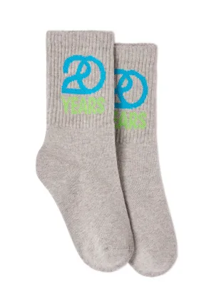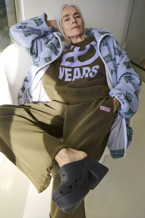 "Als we de collectie in een paar woorden zouden omschrijven, zouden we zeggen: patches, logo’s, maximalisme en unisex. Voor onze 20e verjaardag wilden we groots uitpakken, dus hebben we een reeks uitgesproken logo’s gecreëerd die op een krachtige manier terugkomen op de nieuwe items. De kleuren variëren van zacht (blauw, celadon, botergeel, pastel roze) tot diep (nachtblauw, bordeaux, bruin, kaki), met hier en daar een gedurfde knalkleur op accessoires (grasgroen)."