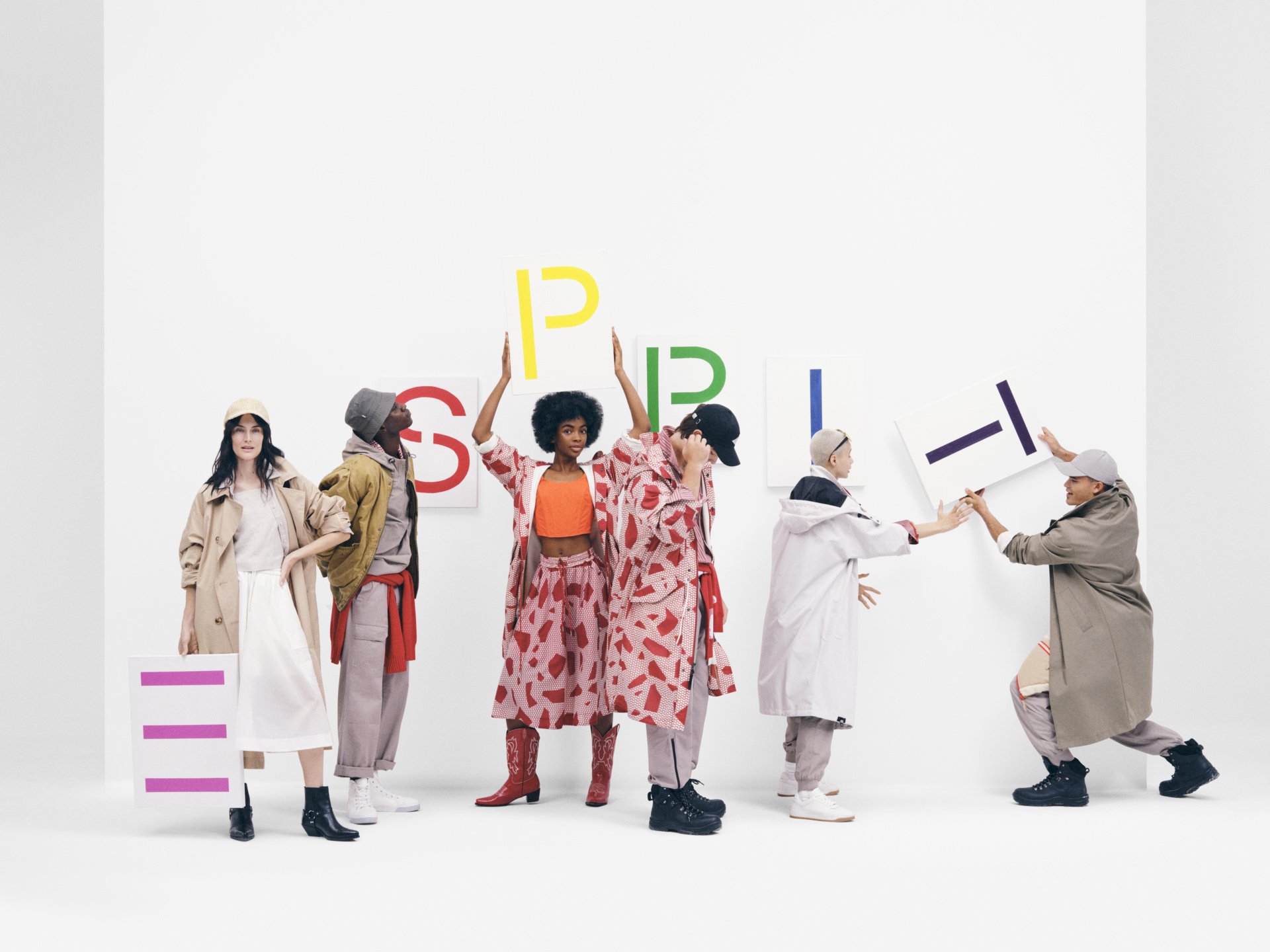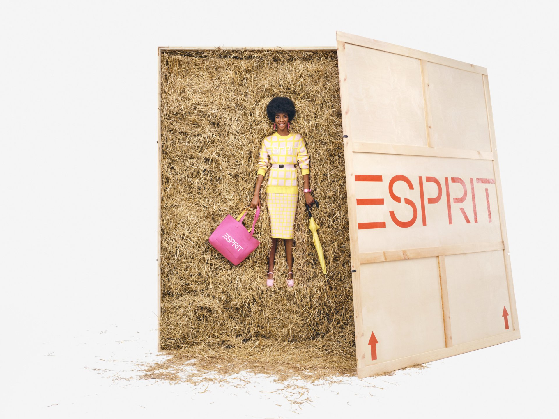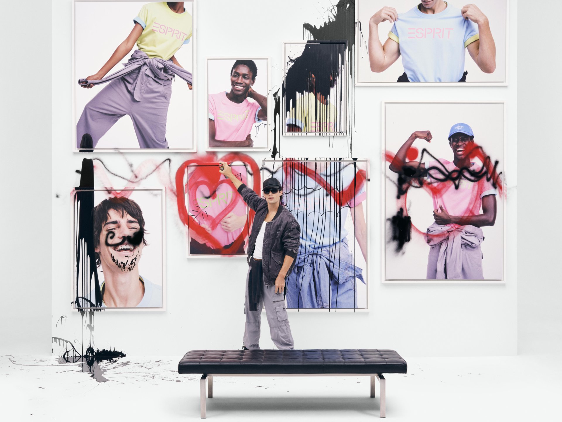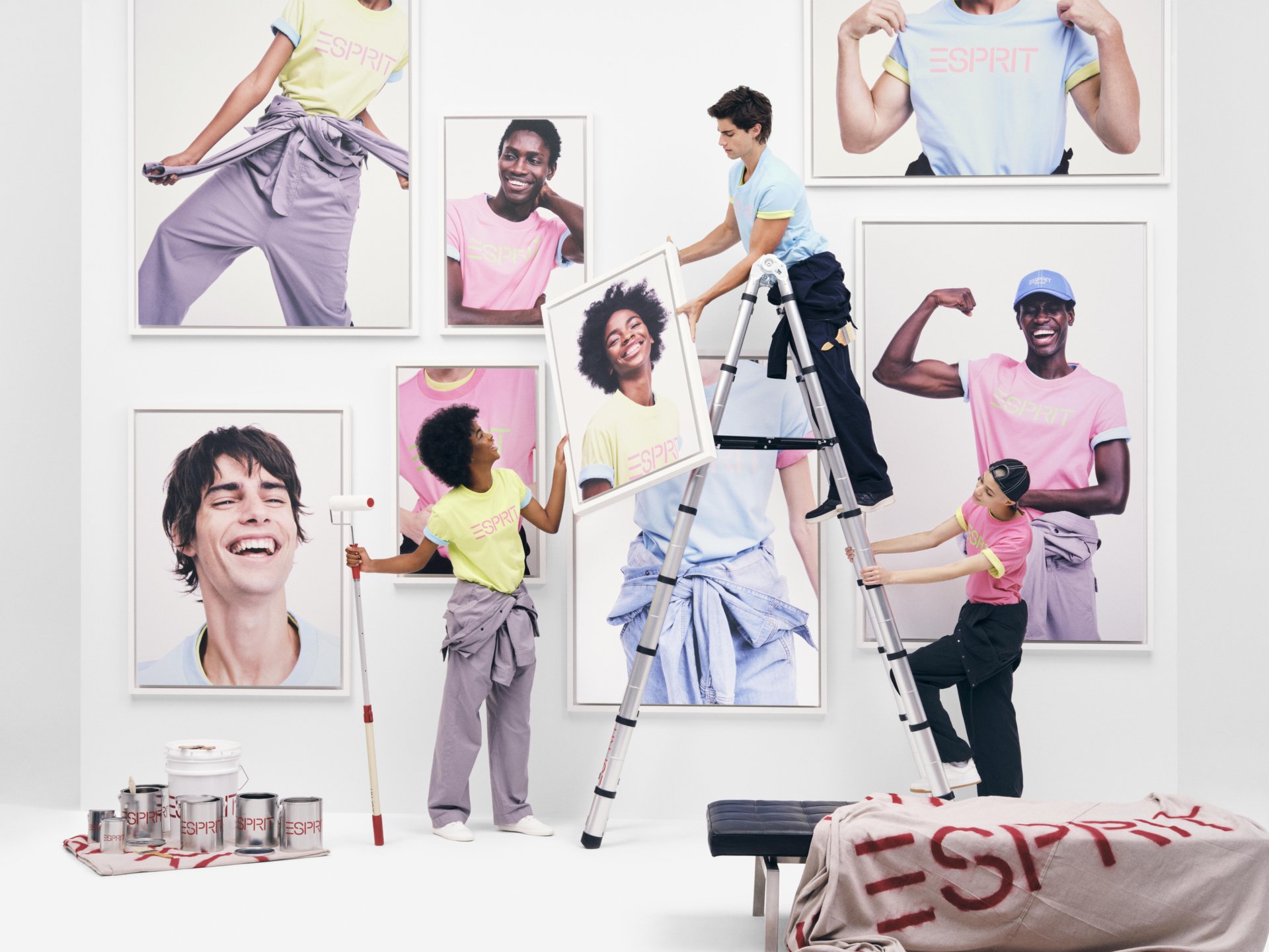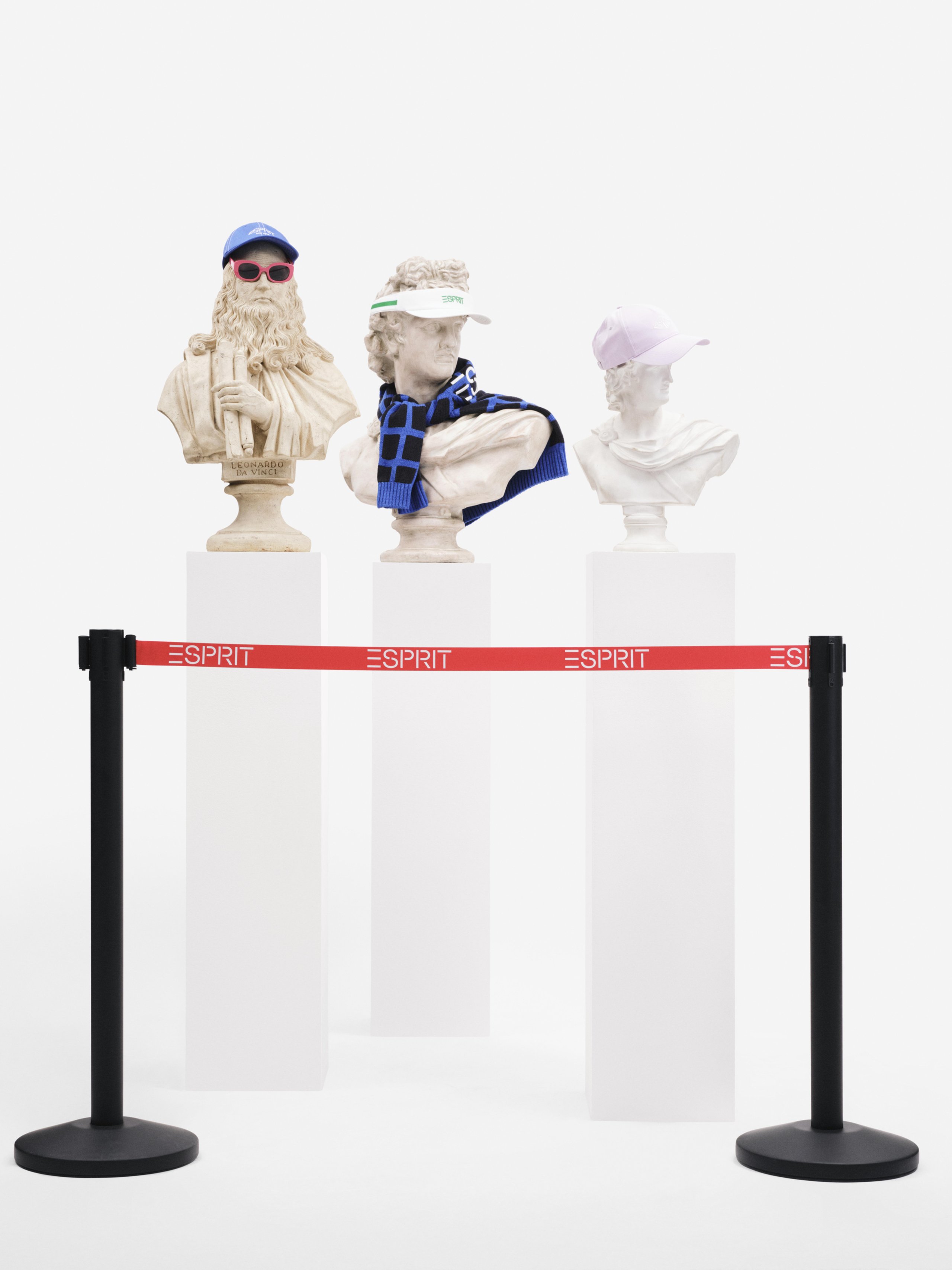 Het merk viert hiermee op een luchtige manier ‘de oude meesters van Esprit’ – Oliviero Toscani, Ettore Sottsass, Doug en Susie Tompkins - Waarbij historische figuren op een voetstuk worden geplaatst. Een collectie met levendige kleuren en metallic afwerkingen tot gedurfde geometrische patronen en moderne urban stukken van leer.