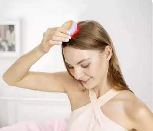 Roodlichttherapie is een veilige, effectieve en natuurlijke behandelingsoptie voor haaruitval. Het is klinisch bewezen dat deze behandeling de haargroei stimuleert en een positief effect heeft op de dikte van het haar bij zowel mannen als vrouwen. De T-Sonic™ massage helpt de bloedcirculatie te stimuleren, zodat zuurstof en voedingsstoffen die essentieel zijn voor de haargroei gemakkelijk de hoofdhuid kunnen bereiken. Daarnaast zorgt vuil zoals dode huidcellen, zweet en olie op de hoofdhuid ervoor dat de haarzakjes verstopt kunnen raken en haaruitval kan worden veroorzaakt. De T-Sonic™ massage helpt het vuil zachtjes los te maken, om de haarzakjes te ontstoppen en haaruitval te verminderen. Ook helpt het de haarzakjes op de hoofdhuid tijdelijk te openen, zodat de ingrediënten van haarserums of oliën die aangebracht worden nog dieper in de haarzakjes kunnen doordringen, voor het ultieme glanzende resultaat.