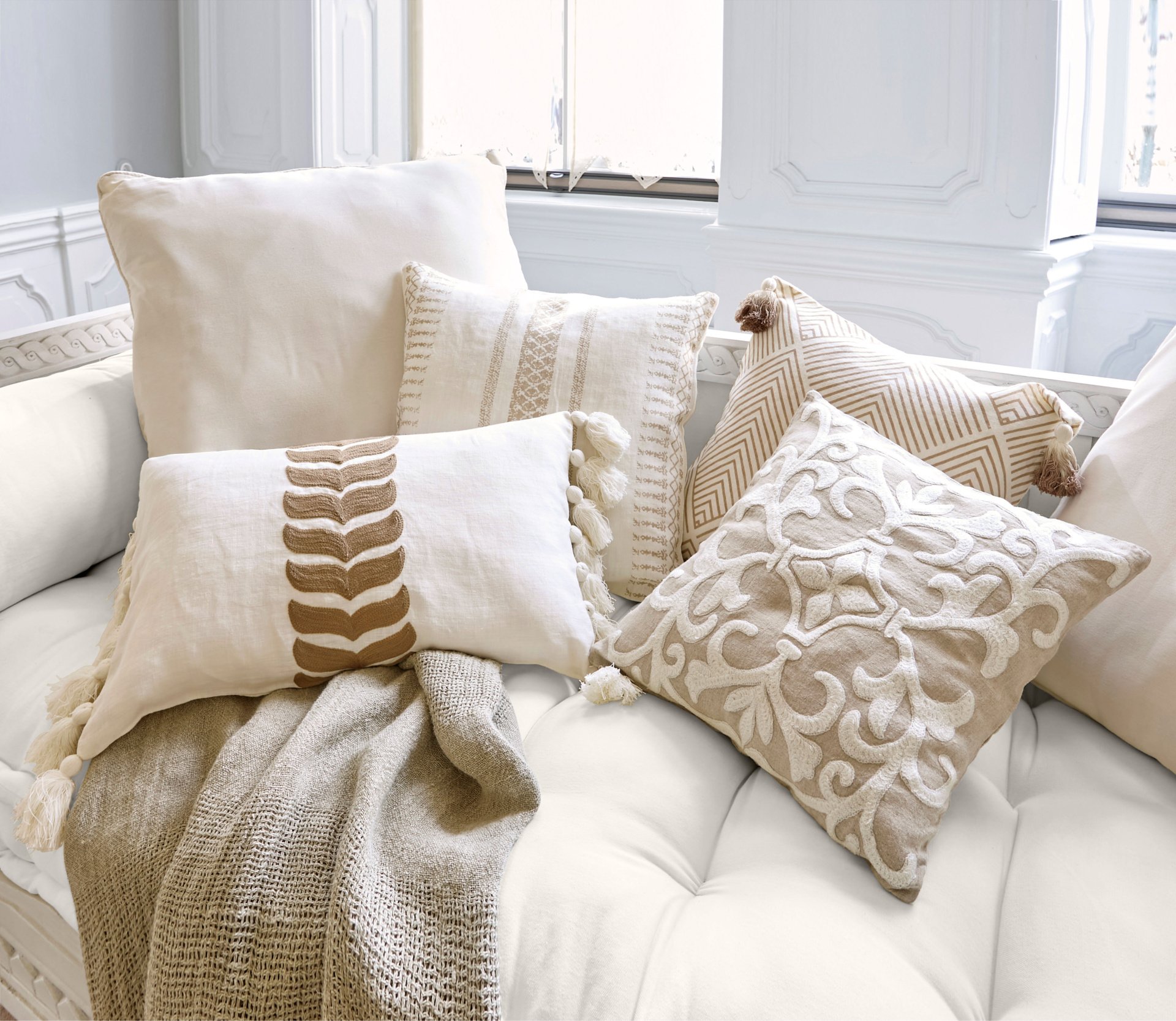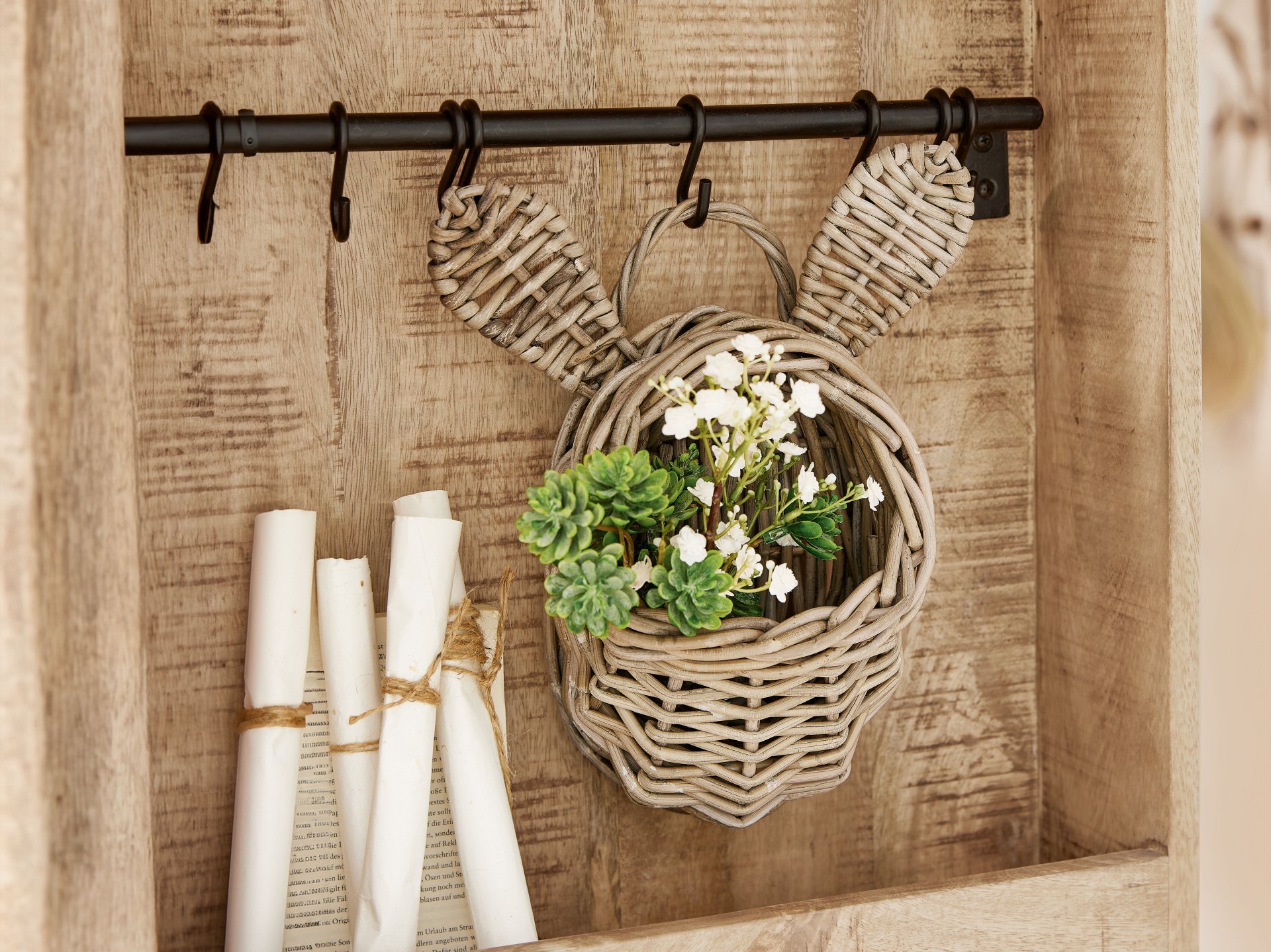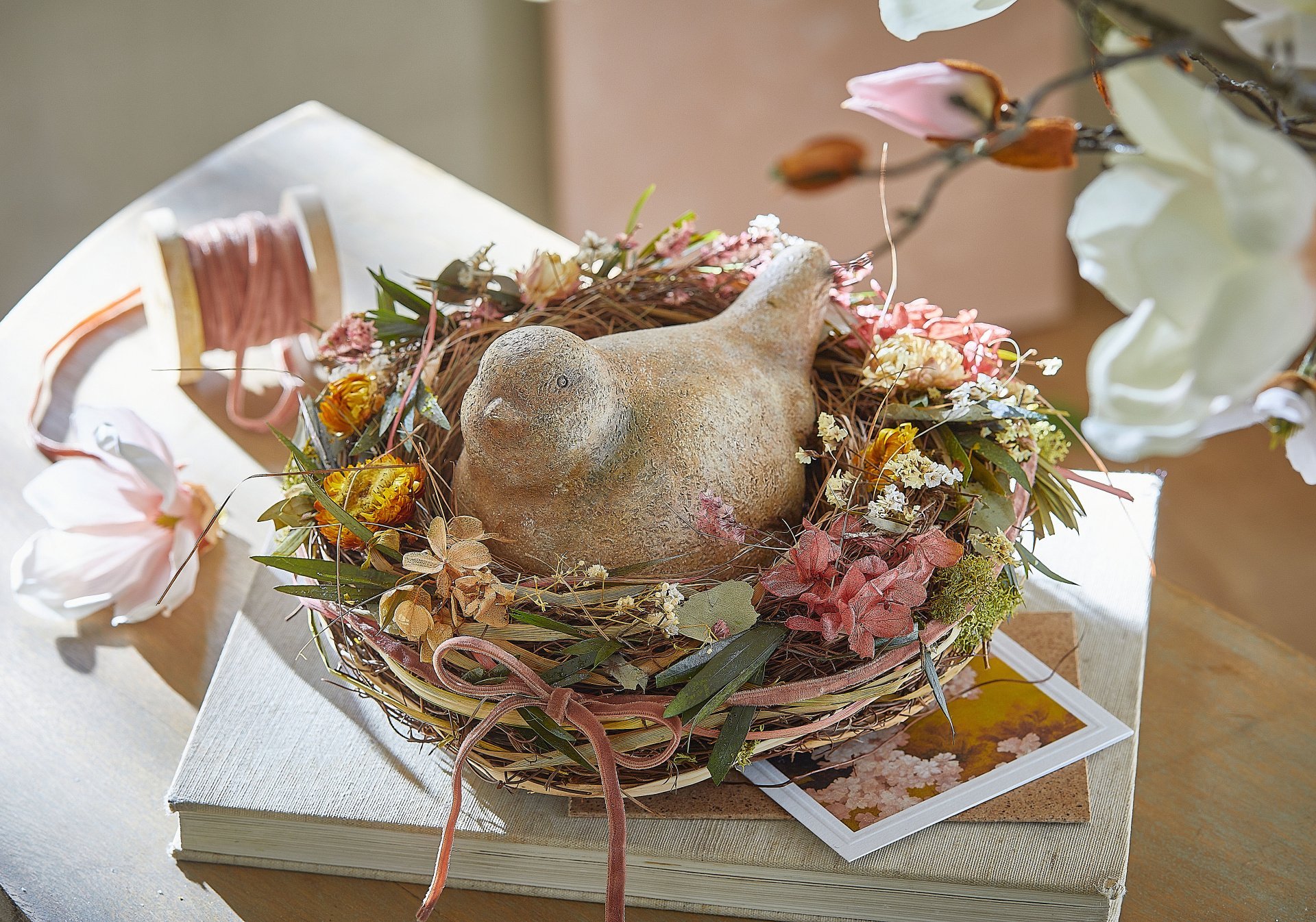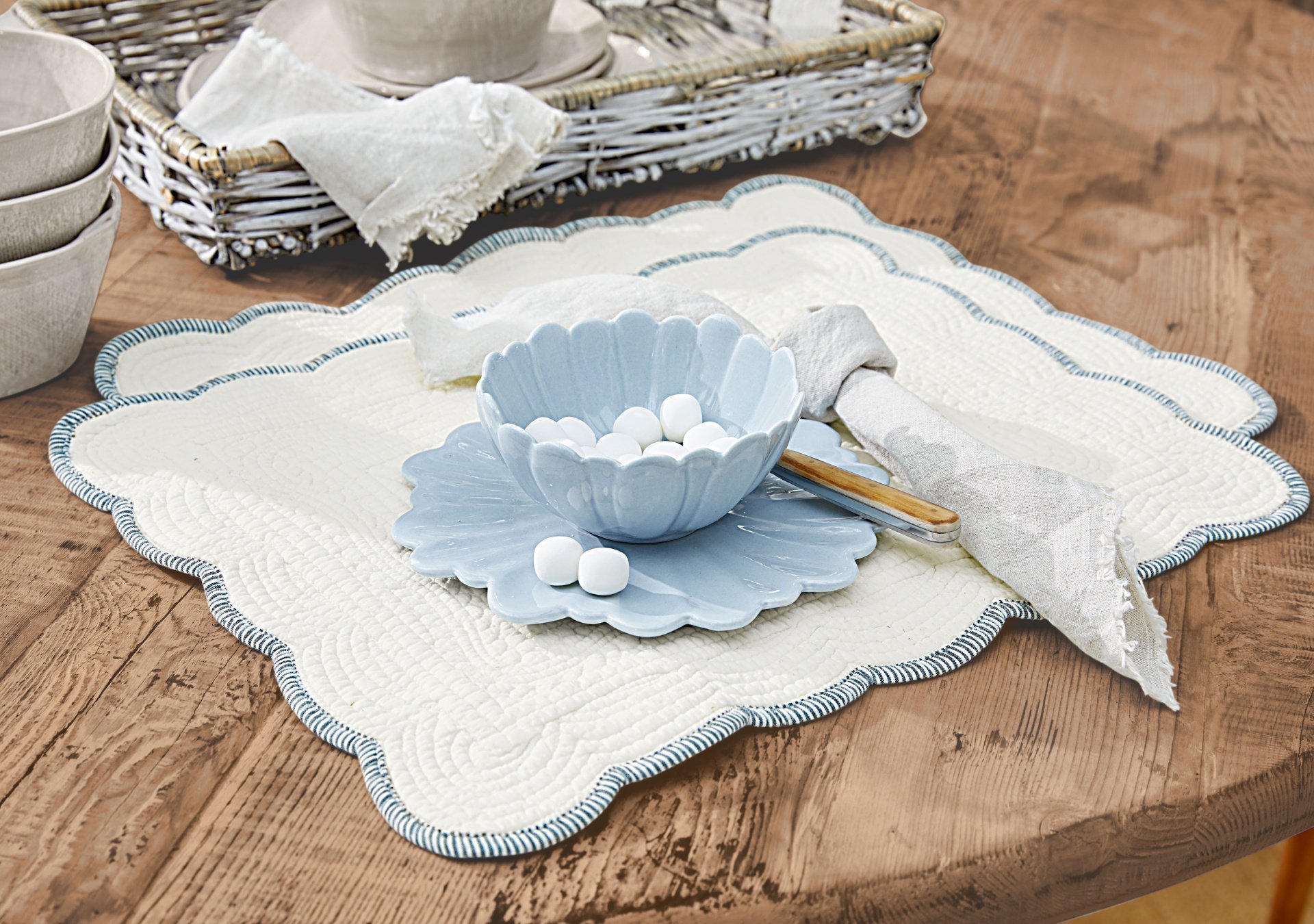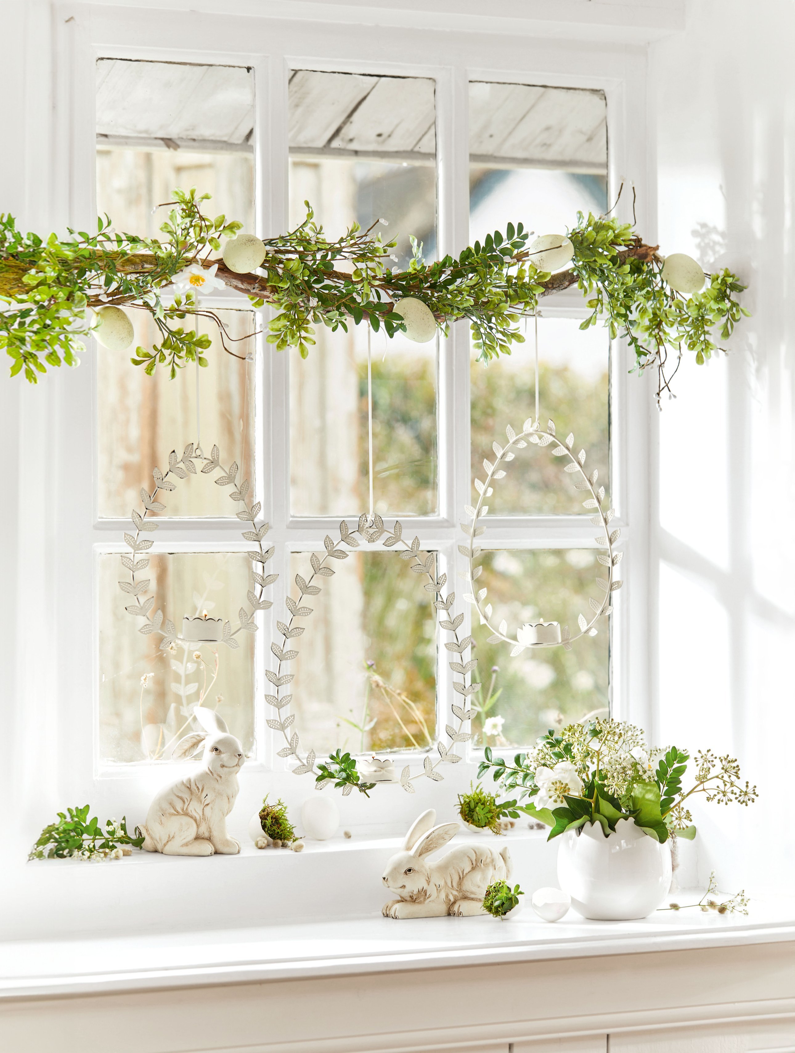 De collectie brengt het frisse lentegevoel tot leven met zachte witte en pastelkleuren. Van elegante decoraties zoals paasboeketten tot verfijnde tafelaccessoires als rieten broodmandjes – alles voor een gedekte tafel die zowel fris als kleurrijk oogt.