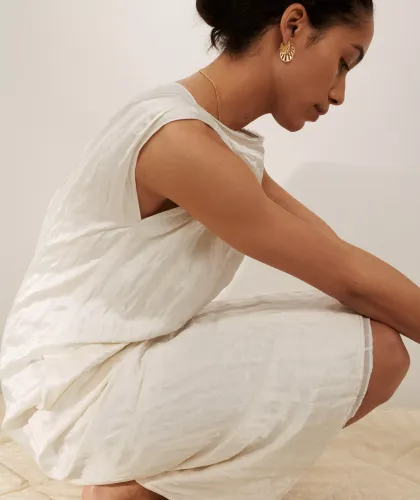 Elk item in de Soft Sky collectie straalt eenvoud en rust uit, geïnspireerd door de natuur. Deze drop kent verfijnde sieraden in zilver en verguld goud, met af en toe een subtiele toevoeging van een parel. De sieraden brengen de zachtheid en ingetogen schoonheid van de herfst tot leven, waarbij de ronde vormen en natuurlijke lijnen een gevoel van beweging en harmonie oproepen.